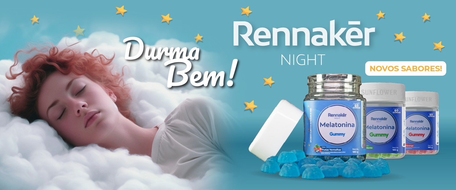 Melatonina Gummy Rennaker - Kit 3 Unidades sabores sortidos