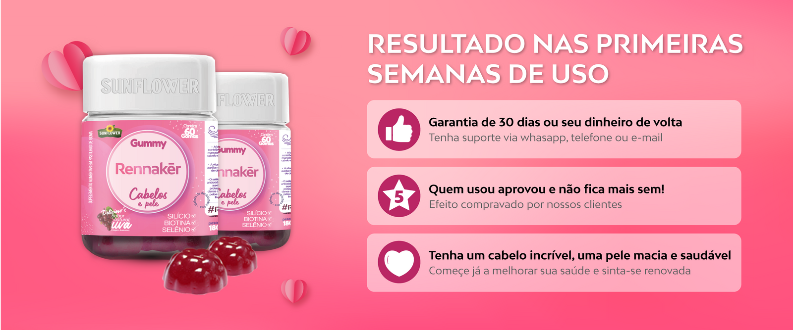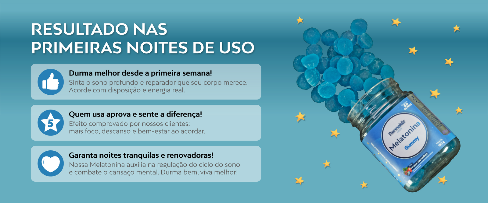 O melhor produto que já tomei, como são rápido os resultados, não fico mais sem minhas gominhas.